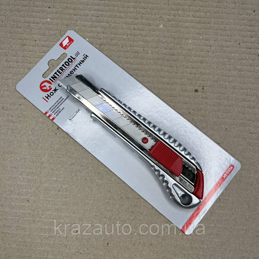 Ніж сегментний 18 мм, металева напрямна, протиковзний корпус INTERTOOL HT-0504